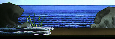| わずか48cm高の「手摺り(てすり)」が、海と地面の境、つまり波打ちぎわを表現。 |