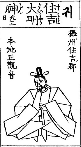 住吉大神託於祝巫告白、謡舞者吾体也、這伎合吾国風宜祭祀之、顕於此伎端先容吾三神、吾高貴徳王菩薩、更名妙幢菩薩也。 我三神分身在天地海、在天高皇産霊尊、在地大己貴大神、在海波瀲武尊、別身別神本我也。