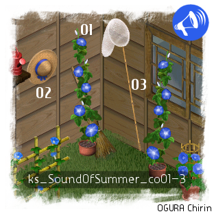 2008/04/19 ・オブジェクトについて 購入して、メニューから「音を出す」を選択すると、 日本の夏っぽい音が絵から流れ出します。 「音を止める」で終了。 見た目的にやっつけなのは仕様ですのでご了承ください。 (この程度が精一杯ともいう) 必須アドオン:なし ・インストールについて 本体は Maxis\SimPeople\Downloads の下に入れてください。 音声データは解凍すると ks というフォルダができるので、 こちらはフォルダごと Maxis\SimPeople\Downloads の下に 入れてください。 ・二次配布について 音声データに関してはご遠慮くださいませ。 本体は、元になっているのが「ksシムピ蔵」のものであることを 記載していただければご自由に。 リカラー、改造、機能追加、なにしちゃってもOKです。 連絡いただければこのページでも紹介させていただきます。 本体ダウンロード 音声ダウンロード |