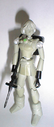 | 長らくお待たせしました(待ってない??)。やっとガールコマンド制作日記をアップできました。 現状は、写真のような進行度です。頭部、上半身、腰部を新造してます。上半身と腰部には、ポリキャップを挟んで仮に可動にしてあります。このへんは、まだどうなるかは未定。 腕と足はまだ細かいモールド入っていないです。背中には一応5mmジョイント装備。ユーボーグやレスキューの武器なんかを付けて遊んでみました。とりあえず、現在はこんなカンジー。 あと1ヶ月。間に合うのか? |