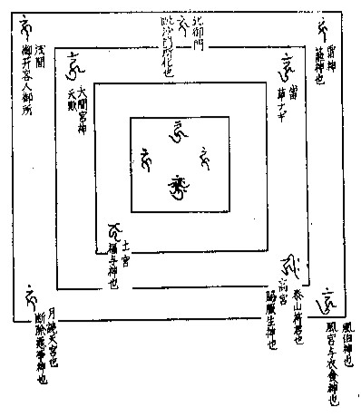 十一の王子有り。以て仕者と為せり。 第一は随荒天子と名く。閻羅法王の所化也。此は荒祭宮と言へり。 第二は龍宮天子と名く。難陀龍王也。此は滝原宮と名く。 第三は水神天子と名く。跋難陀龍王也。此は滝祭と言へり。。 第四は月夜宮と名く。天官也。 第五は月読宮と名く。地官也。 第六は伊象宮と名く。又伊雑宮と名く。司命神也。 第七は伊忍天子と名く。此は伊佐奈岐と名く。司録神也。 第八は高山天子と名く。此は高宮と名く。泰山府君也。 第九は並宮と名く。五道大神也。並に五所神也。 第十は風宮と名く。風伯神也。 第十一は興玉と名く。水神也。亦水官也。