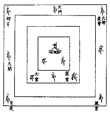 अ{a} 胎蔵 हूं{hūṃ} 愛染 御井 हूं{hūṃ} 如意輪 金剛 हं{haṃ} 四 北御門 हूं{hūṃ} 毘沙門 大間 हूं{hūṃ} 白衣 五 月夜 क{ka} 聖観音 土宮 हं{haṃ} 揚柳観音 高神