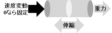 物質は伸縮しており、速度印加のタイミングによって物質が蓄えるエネルギは異なる。 |