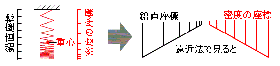 逆に非線形な密度の座標上の観測者から線形の鉛直座標を見れば歪んでいるように見えるかもしれない。