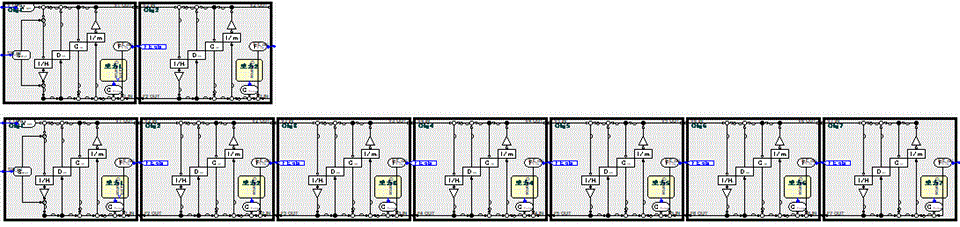 基本モデルを2連、及び7連にした例で、n連に繋げる事で任意の長さを持ったバネを表現出来る。Fig.2参照