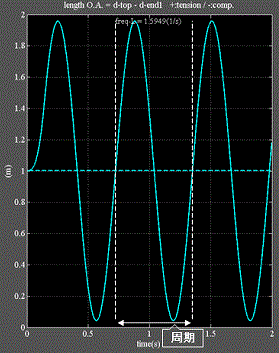 バネ全長が変化する時系列波形から周期、振動数を読み取る。