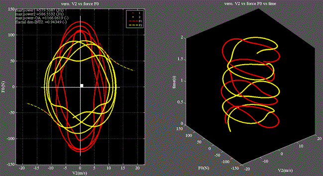 ・左図はx軸:バネ端部速度、y軸:バネ復元力に取ったものである。
