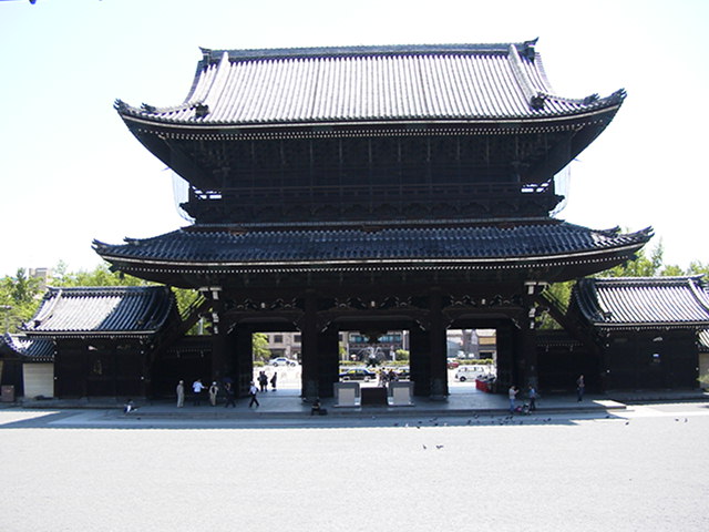1024 ふと横を見てみるとばかでかい門が・・・東本願寺でした。ちょっと、寄り道。ちょうど、朝の説法を行っていたのです