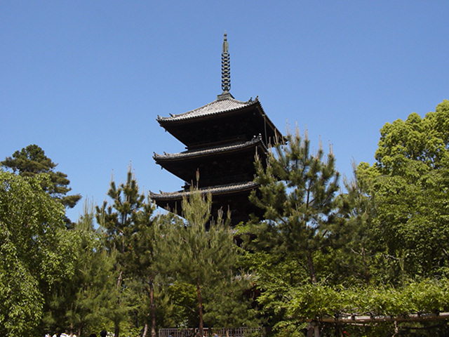 京都の五重塔として駅からも見える東寺、去年の秋にいって見事なまでの紅葉で原色の洪水な光景に絶句した