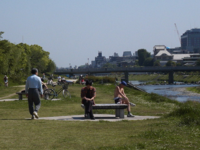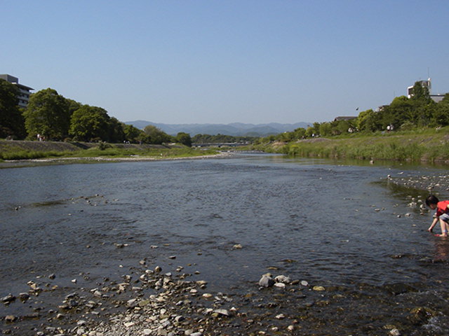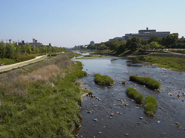 いくと10分ほどで銀閣寺)。常々、鴨川沿いを自転車で走ってみたいなぁと思っていたので下りを飛ばさずのんびり景色を楽しみながら川下り。