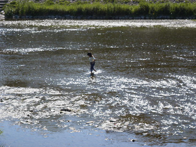 途中、子供たちが川に入っていて、非常に羨ましく、私も靴を脱いで鴨川へ久々の水遊びを堪能。なんやかんやで鴨川を30分以上かけて