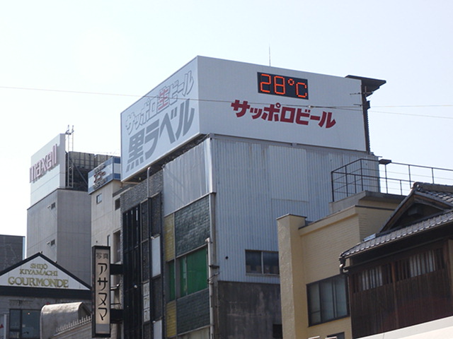 を見ようかと目を転ずると、ビルの上にあった気温表示が目に入り絶句。「気温28度」・・・・・流石京都。