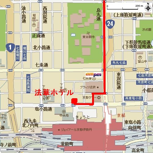的に出発してしまっているので戻るのも癪だしということで、途中にあったampmで小型の地図を購入。ところで、京都という町は