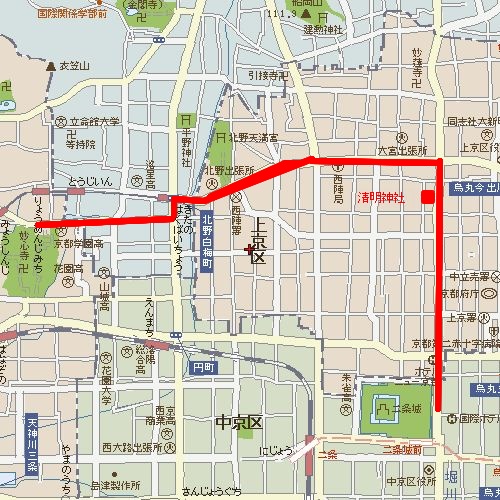 1140二条城→(移動10分)→1150清明神社到着(移動軌跡)