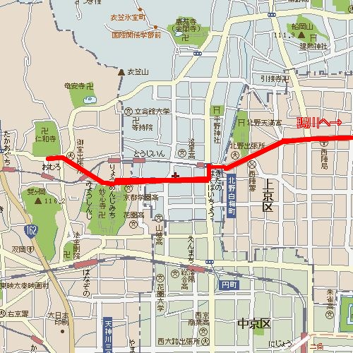目標を京都の西北、仁和寺に設定し、名所を通るようにルートを定める。