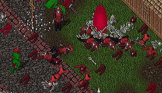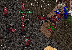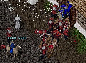 繰り返しトナカイゲートを襲い、ついにトナカイを全滅させることに成功。仲間割れが発生したのでトナカイゲートに飛び込んでムーンゲートに向かう。各街のNPCは全部殺されたあとで無人だった。ブリに行ったらトリほどではないが人がいる模様。サンタゲートに飛び込んで青サンタとの抗争に参加。死んだところでコネロス。二度とつながらないか、つながってもすごいラグで動けないので見捨てた。