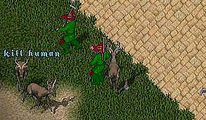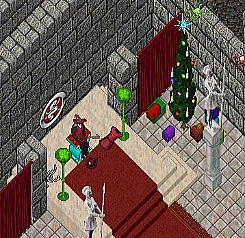 トリンシックの武器屋の前でサンタの奥さんでlogin。いきなり殺戮の真っ只中。しかし、うごきが良いわたしはうまく殺戮をかいくぐることに成功した。それから街の中をうろうろ歩き回るのだが、人とすれちがったとき、必ずそいつが立ち止まって攻撃してくるのは笑えたっす。人間対トナカイの戦場を発見。ちょくちょくちょっかいを出す。途中でサンタのゲートに、続いてエルフのゲートに飛び込んで対人戦を堪能する。エルフのゲートに飛び込んだ直後にサンタの大軍の襲撃を受け、居合わせたエルフで反撃して追い返したのだった。