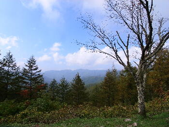 12時30分にようやく、ぶどう峠(1510m)に到着。 群馬県側から長野県側を見た峠の様子。 峠の向こう側に青空