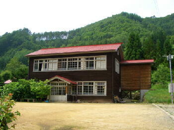 野麦峠からの下りで木造の立派な建物がありました。 見たところ廃校を公民館などとして使用している感じです