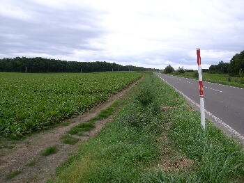 小清水原生花園から国道244号を離れ小清水市街に向かうと、丘に 甜菜(てんさい)畑が広がっていました。今日