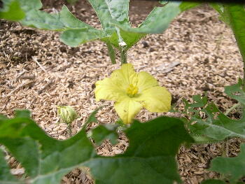 にもぐる準備中だったのでしょうか。 一方、スイカは、花が咲いていました。
