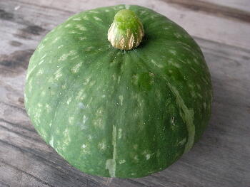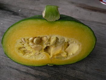ヘタのの部分が少しコルク化していたカボチャを、一つ試し採り。 完熟までにはもう少しのようですが、とりあえず