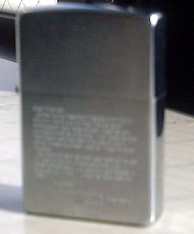 | 備考 | ZIPPO社の社長のコメントが刻印されている。訳すのが大変だった。字が小さいからではなく英語力の問題ね。 | ||