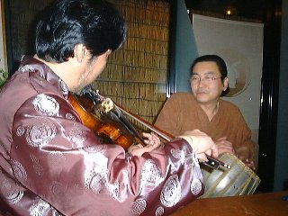昨年秋、シアトル留学から帰国し、この不況にもかかわらず就職が決まったそうで・・・ パーティーが終わり、皆で近所のお寺に鐘を撞きに行った帰り、一緒に撮らせてもらいました。 この鐘撞きがなかなか有難い雰囲気でして、堂の一階の入り口をくぐると、 明かりも無く真っ暗で、急な階段があり、頭を打ちそうになりながら、 登ると板敷きの鐘を撞く場所があります。 そこには読経を続けるお坊様が居て、薄暗いけども周囲が見えてくる仕掛け?です。 そして、お坊様と差し向かいで正座して合掌した後、願いを込めて鐘を撞く。 こういうシステムになっております。 |