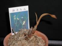 ディアレー 花の奇妙さに思わず購入したが、栽培はかなりの難度らしい。でも買うたもんはしゃあない。まずはこの冬を乗り切れるかどうか?根性を出して頑張れ!!(2002/10/13) 軟腐病だろうか、新芽やバルブの根元から柔らかくなって茶色くなって腐ってきた。 腐ったバルブを切り捨て植え替えてみたが、根は全滅。(2003/07/09) 残ったバルブも次々に腐ってくる。 ほぼ絶望的(2003/07/29) 遂に最後のバルブも根も芽も出す事無く腐ってしまった。既に根や芽が出る組織がだめになっていたのだと思われる。その見極めができれば無駄な「バルブ伏せ」はしないで済むんだが。(2003/11/23) |