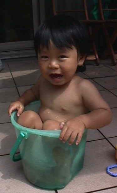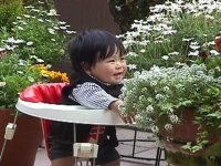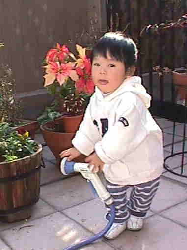 2000.9.20(水) 3週間前に2歳のお誕生日を迎えて、いよいよ恐怖の二歳児に突入! 何でも自分でやりたがり、失敗し、ひっくり返って泣く・・・これを一日何度も繰り返す。泣く声の大きさもも半端ではない・・・「あー泣いてる。赤ちゃんだぁー」と胸元にぴたっと抱くと下から私を見上げながら、ひくっひくっと小さく泣く。甘えモードの顔がちょっと可愛い。 言葉もずいぶん増えてきて、お気に入りの歌を振り付きで歌ったり、数を1から10まで言ったり・・・たどたどしい言葉がはっきりした言葉になってきたら、憎たらしいことをいいだすのかしら?あぁ今のうちにビデオを沢山撮っておかなくちゃ。 2000.7.6(木) ただいま1歳10ヶ月。 好きなもの・・・動物。動物の絵本を繰り返し見ている。 水遊び。お天気のいい日は朝からビニールのプールやバケツで水遊び。ベビースイミングも週に2回通っている。 納豆、ふりかけごはん、ハンバーグ、ケチャップ。 言葉もだんだん増えてきて、大人の言うことを真似して話すのが面白いし、可愛い。 いまの悩み(かなり真剣)・・・息子はどこでも走り回る。小さい子にぶつかったりしてとても危ない。目の前の子どもを押したりする。抱きつこうとして覆い被さってしまうこともある。 何度危ないからと叱っても繰り返す。今日も座っている子を押して、その子は頭を床にぶつけてしまった。 何度もその親子に謝り、息子に言い聞かせ、あやまるように促し・・・ほんとうに毎度の事ながら泣きたくなる。目を離さないように気を配っていても一瞬のうちに行動を起こすので、常に気を抜けない。子供の集まる場所に行くのが怖くなるし、しんどい・・・ママ達とのおしゃべりは楽しいのだけれど・・・ ![]() 2000.1.25(火) もうすぐ1歳5ヶ月に。「パパ」「おいちぃ」など低音でつぶやいたり、プリン欲しいヒト〜〜などの問いかけに「あぁ〜い」と手を挙げる。 前髪を切りすぎて「まことちゃん」「ポコちゃん」のようになり、ちょっと悪がき風? いちごをフォークに刺し、はぁーいとまわりの人の口に入れてくれたり、小首をかしげながら、ひとさし指をほっぺに当てて可愛い顔をする。きゃぁ〜じゅんちゃん〜かっわっいい〜と大げさにハグすると満面の笑顔。 タンスを開けると遠くから飛んできて、顔をつっこむし、掃除機には乗るし、テレビとソファーの間に顔をはさむし、すべり台からツーッっと滑り降りるし、忙しい〜