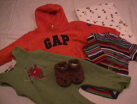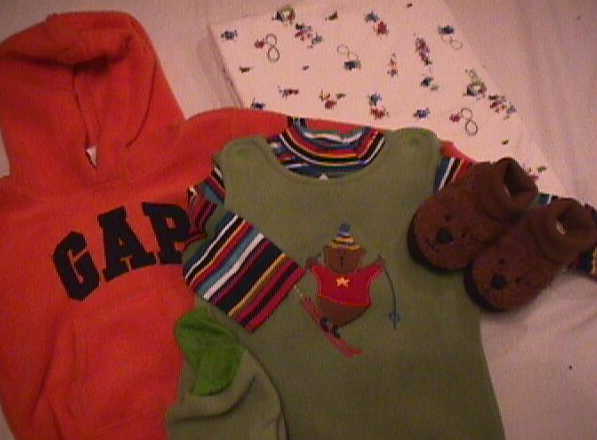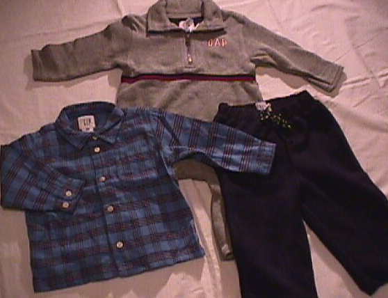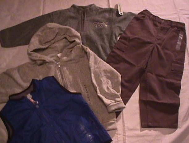 | フードパーカー(グレー)、オールドネイビーフリースプールオーバー(グレー)、オールドネイビーカーゴパンツ(オリーブ)、オールドネイビーリバーシブルベスト(ブルーで裏がグレー) 以上4点 | |