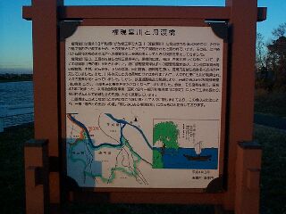 土手には休憩所があり,そこから少し離れた場所に看板がありました。何気なくその看板に目をやると,興味深い内容が書かれて