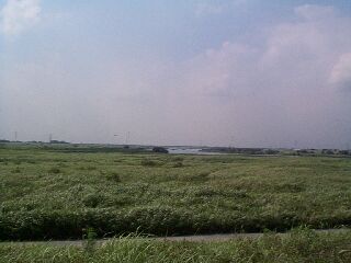 たので,車を止め,土手の階段を上りきると,利根川が現れました。その日は,曇りで、時々小雨がぱらぱらと降ったり止んだりを
