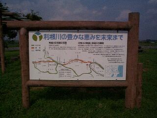 看板には周辺地図も書かれており、五霞町の北境界線を走る部分(つまり、今私の目の前を流れている利根川)が赤線で書かれて