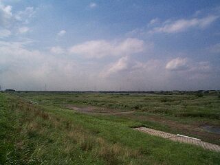 ずして、城と公園がある高台からすぐなだらかな斜面を降りた灌木が生い茂る三角州地帯は五霞町エリアになっています。釣り人や