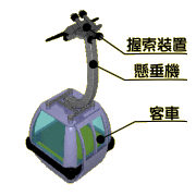 単線式の普通索道の搬器は握索装置、懸垂機、客車で構成されています。