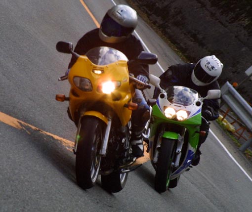 今回は動く物を撮りに行こうと、ツーリングする人達が良く通るある場所に行ってきたのでした。 午前中に家を出てバイクで走る事約2時間。目的の場所に着いたんだけど……、 11月も半ばで、バイク乗るにはちょっと寒いかなと言う感じなのに、結構の数のバイクが走ってる…… 「寒いのによくやる〜」と思いつつ、目的を果たす為に、ちょっと広いコーナーにバイクを止めてカメラを片手に 取り出し構えて一言「暗い……」。そう、外は晴れてても、ここは山中、木々に覆われて写真を撮るのに十分な 明るさが確保できなかったのだ。 2時間程、露出補正等で苦し紛れに撮って来たんだけど、夕方にさしかかろうとする頃にはどないもこないも手の打ちようが 無く泣く泣く帰ってきたのでした。 ↑ EF28-128 ISで撮って、多少枠をカットしてます。 後に気付いたんですけど、D30はISOを自由に変更出来たのを ブレて無い写真の内の一つ。結構楽しそうでした。 忘れてて、T氏に「身分不相応な物を使うからや」って言われて言い返せなかった自分が悔しい。 そーいえば、帰りに車とバイクで事故したらしく救急車とか止まってたけど、写真撮るのも 悪いような気がして、それを横目に帰ってきたのでした。 事故には気をつけないとね〜。 ← これもEF28-135ISで、と言うかこの頃はこのレンズしか持ってなかった。 周辺をカットです。こー走れると気持ち良いんでしょうねぇ…… で、日が変わり知り合いがOFFのレースに出ると言う事で、見に行ったんだけど、 前日が快晴だったので、レースが始まったら埃が舞う舞う……見る間に空気が茶色く染まってしまい 撮影って言ってる余裕無かったので最初の一部しか取れなかったんだけど 見る側は「すごーい」とか「面白い」とか言ってられるけど、これがやる側だったら相当の体力無いと 続けられないんだろうなって変に心配してみたりとか。ちょっとやって見たいなって思うのは思うけど きっと思うだけ。多分ね。 因みに、これは知り合いの勇姿。格好良いね〜 他にも撮って有るんだけど全部は紹介できなくてごめんね。 OFFのレースは埃まみれになる事さえ除けば、面白そうな写真撮れそうなんだけどな〜〜〜〜 レースの序盤と言うか一週目での1コマです。→ 一週目から飛ばす人は少なかったんだけど 彼は違った。一週目から飛ばし過ぎ〜〜って気が。 周回を増すごとにアグレッシブになって行った気がする |