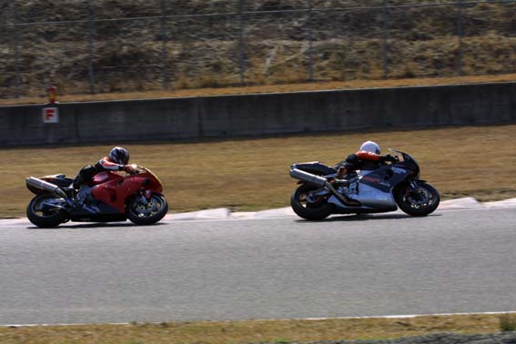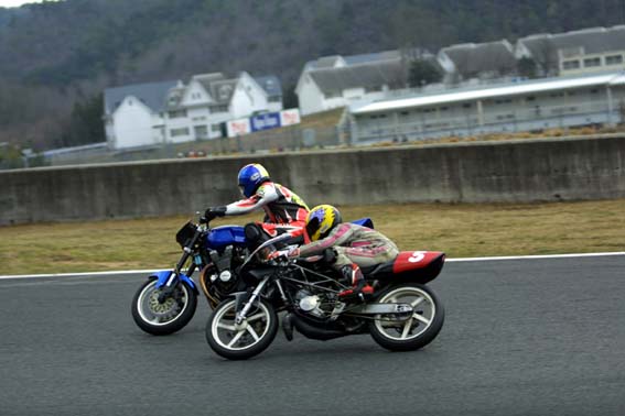 このメールを頂いたのは3月の30日。4月1日と言えば世間様では日曜日でも私は お仕事……其の時点でレースの場所、時間共にわから無い状態にも関わらず即効休みを取った 私……会社の人達御免なさいと心の中で謝りつつH氏と詳細を打ち合わせ。 場所は、「TIサーキット英田」(岡山)・時間は早朝という事で、前日から行こうと 言う話になり、偶々近くに居たN〜氏にも声をかけた所「私も行く」という事になったので 3人で行く事に。途中、ラップを歌う(?)ナビとか一寸した笑い事もあり〜で 朝8時過ぎには着きました「TIサーキット英田」。 しかし、既に始まってたりしたのは秘密にしておこう。