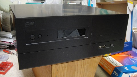 上の写真で、上側がフロントで、見えませんがこちらから外気を自然吸気してHDD を冷やしてCPUの方へ風が流れます。